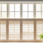 تصميم مودرن لـ شتر شباك داخلي مصنوع من الخشب الطبيعي الفاتح، يتميز بشفرات قابلة للتعديل للتحكم في الإضاءة والتهوية داخل المنزل